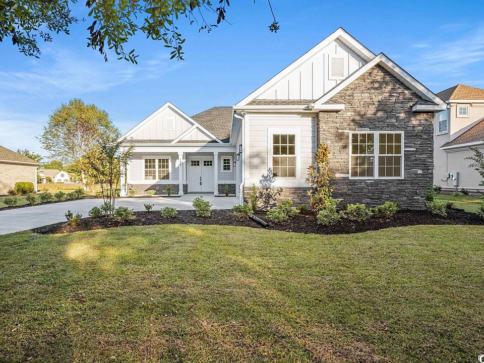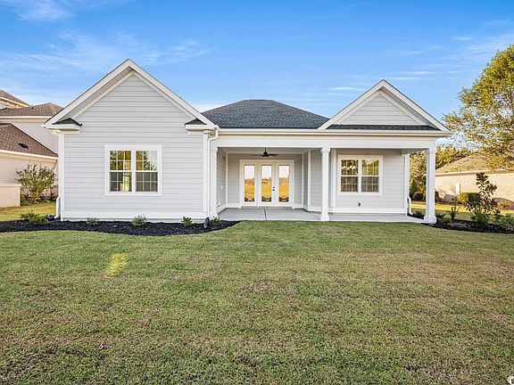 MOVE IN READY! Nestled within the prestigious golf course community of Wild Wing Plantation, this home sets a new standard in luxurious living with lots of privacy. A host of high-end finishes and upgrades are on show throughout the sprawling 4beds, 3baths, 3 car garage! Lot backs up to the golf course. Even before stepping inside, you will fall in love with this remarkable residence thanks to the private backyard, charming curb appeal and lush established gardens. Tall 10-footceilings soar overhead throughout while 12-foot feature tray ceilings, crown molding, LVP flooring and an abundance of natural light ensure this is an awe-inspiring interior. The living areas are generous and open-plan encouraging an easy flow from the great room through to the dining and kitchen. You will love to gather in front of the cozy fireplace on cool winter nights while any avid cook will adore the modern kitchen with upgraded granite, a gas cook top, a walk-in pantry and wood soft-close cabinets. From here, a wall of slider doors connects to the back porch where you can host guests and admire the peaceful outlook over the backyard. Golf course view add a picturesque appeal while also ensuring privacy for the lucky new owners. Two bedrooms have en-suites including the master with a stunning tray ceiling, a walk-in closet, a double vanity, garden tub and a tiled shower. The remaining bedrooms all have built-in closets with wood shelves plus there’s a laundry room, a third full bathroom and a 3-car attached garage. You will live just 10 minutes from the beach and only moments from grocery stores, hospitals and schools. Wild Wing Plantation is a natural gas community with residents enjoying access to a tennis court and a pool.