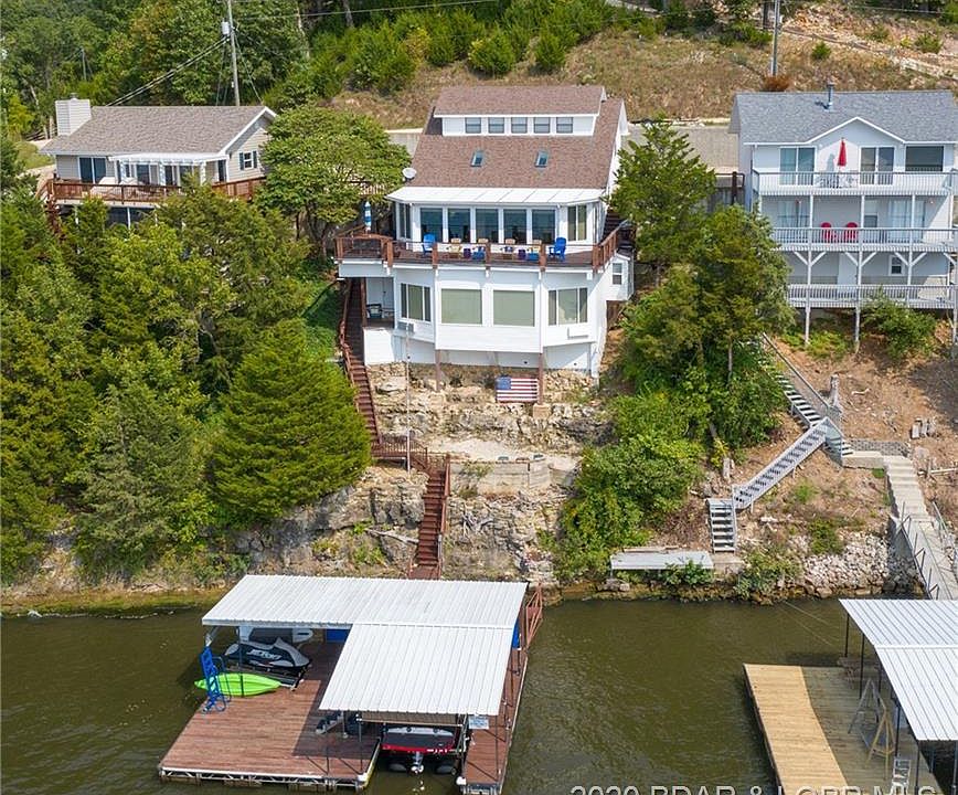Oh my, this one is sweet & bound to get lots of attention from those needing a lot of space & style but not a lot of cost. Those that aren't looking for a project will be equally drawn to this beauty as she's clean, in great condition & comes completely turnkey w/ nice furnishings. With 4 bdrms & 3.5 baths spread over 2850 sf, you'll have room for all. The master suite is enormous & has great separation & privacy. This suite also has a sitting area & the perfect space to setup a home office w/ a view. Did I say view? Many homes love to claim a view but this one is truly spectacular! 2+ mile views of forested shoreline hills, points & bends in the water just leave a huge lump in your throat. And this home was designed to absorb all that awesomeness w/ walls of glass & a ton of outdoor decking. The dock has plenty of party space & comes w/ included dbl PWC lift & 6000# PolyLift w/ remote. If owning a stylish lake home you can enjoy from day 1 sounds fun, it's right here if you hurry!