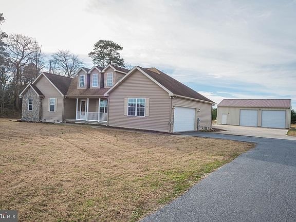 Looking to be in the country and only have one neighbor with-in yelling distance. If so, this one level home nestled on an acre of land is the one for you! Front door opens to a Cozy living room with three oversized windows that allow a ton of warm natural light in and will surely brighten your day! Living room flows into a formal dining room perfect for entertaining or breaking bread with the extended family during the holidays. Open kitchen with tons of cabinet space which leads into a spacious pantry/laundry room. Quick trip down the hall you will find a spacious master bedroom with a large walk-in closet, full, en-suite master bath-double vanity, tile floors, jetted corner tub, and shower with glass doors. Two additional bedrooms and full bath make this home complete. As you exit the rear of the home through the sliding door you will find yourself on a Huge 24 x24 Trex composite deck overlooking a spacious backyard with mature landscaping- oh and let's not forget about the 30x40x12 heated (propane) pole barn with finished concrete floor, oversized garage door and kitchenette complete with running water/ sink. Why wait for new construction when you can move right in? Incredible location - super low Delaware taxes - 9 miles to North Salisbury's shopping hub, and just 35 miles to the Ocean -Bethany Beach, Fenwick Island, or Ocean City! Don't miss this - call today!