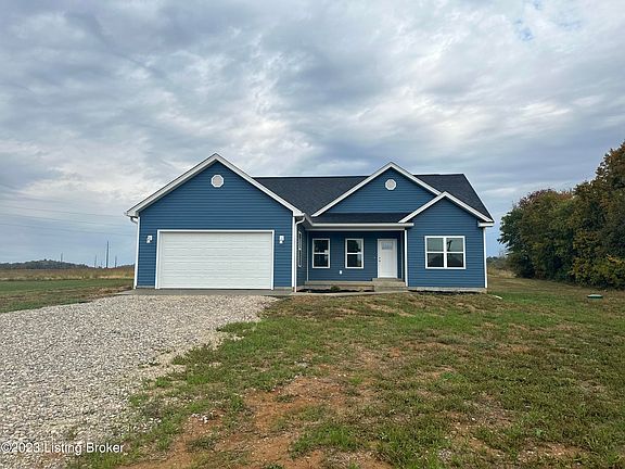 SELLER OFFERING TO PAY UP TO $3,000 TOWARDS BUYER'S CLOSING COSTS. GORGEOUS new construction with convenient location and thoughtful design. This freshly completed 3 bedroom, 2 bath ranch-style home is adorable and move-in ready. Located in the heart of Garret and just off of Highway 313, this home is just a short distance to Elizabethtown and 31W. As soon as you enter the home, you are greeted with a large open concept main living space, complete with trendy vinyl plank flooring and LED lighting that can be found throughout. Preparing and hosting should be functional and enjoyable as there is an abundance of granite countertops in the kitchen, along with soft-close hinge cabinets and all new stainless steel appliances. The bonuses that come with 7840 Brandenburg Road are what make this home desirable- a one year home warranty that transfers to the Buyer, blown insulation in the attic, a hot/cold water spigot in the garage and an electric vehicle charger receptacle in the garage, just to name a few. This one is a true catch and a must-see. Schedule your personal tour and make it yours today!