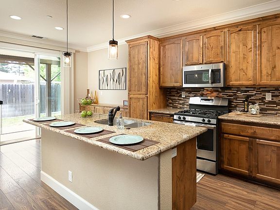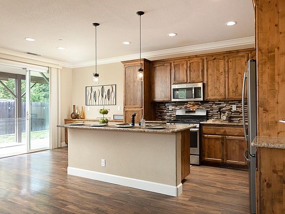 This beautiful semi-custom home is on a large .23 acre lot complete with RV parking. Walking in, the open floor plan living room/kitchen combo is spacious but cozy with beautiful kitchen cabinetry, granite countertops and upgraded tile backsplash, a large island with bar seating, and a beautiful stone-facade fireplace with gas insert. Spacious master bedroom has to the back yard patio and Jacuzzi, and a beautiful bathroom complete with a large soaking tub and separate shower, and a large walk-in closet. The 3 bedroom home has a bonus den which is currently used as a 4th bedroom, great for buyers who need that extra space. Close proximity to shopping, and both the elementary and high school, this house is a great find!