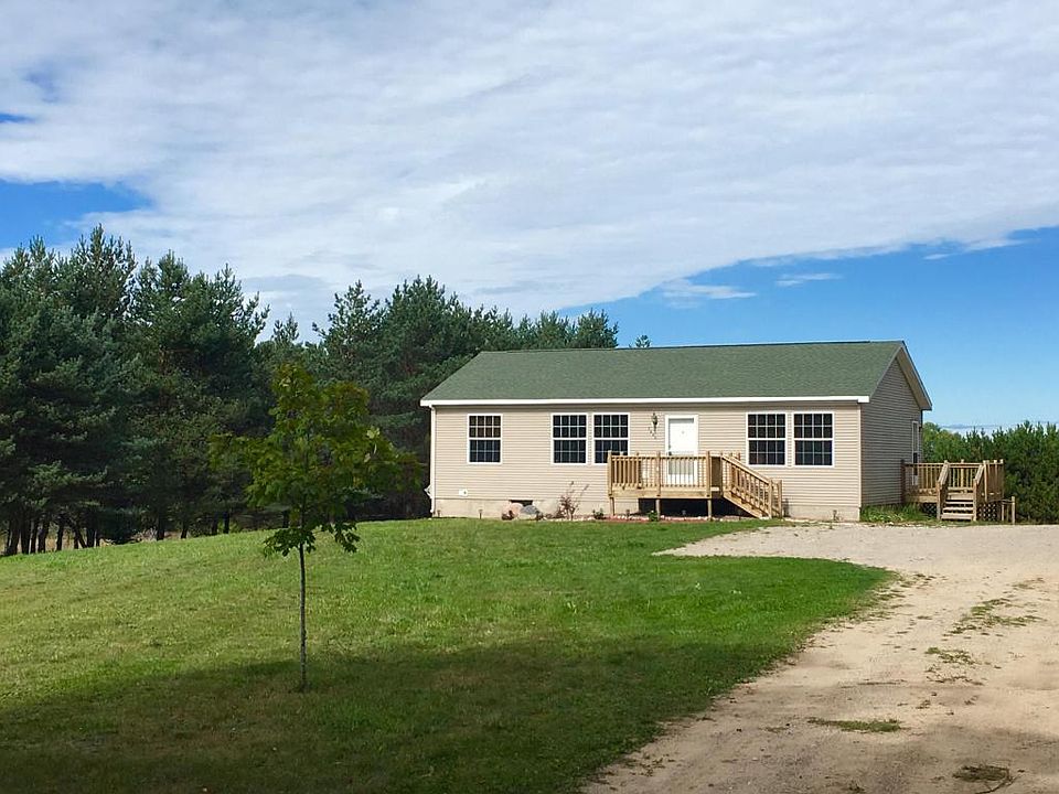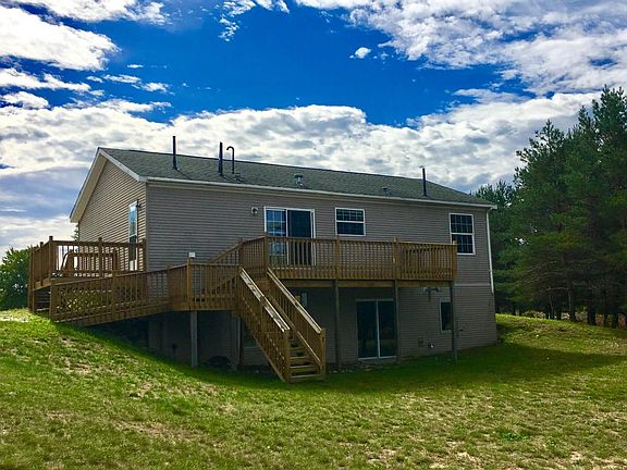 Enjoy beautiful views with deer, birds and mature trees right off of your expansive patio as this home sits on 7 acres! Main floor of this home features a split floor plan, open kitchen, formal dining, master suite and full walkout lower level. Fresh paint throughout, bright rooms, open floor plan and a pellet stove! 3 bedrooms and 2 full baths! Blinds? You won't need blinds this home as it sits privately featuring peace and quiet for you to enjoy! Immediate occupancy!