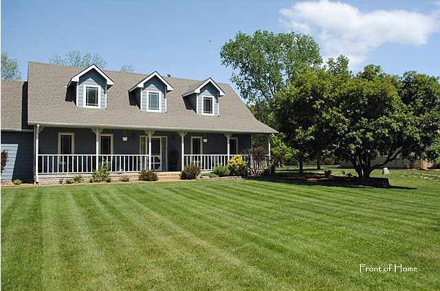 Perfect country setting! 1.5 story, 4-bedroom/2.5bath with loft on 1 acre. Heritage roof and thermo-payne windows throughout. Open floor plan with gorgeous hardwood floors on main level, ceramic tile in kitchen and dining room, knotty pine cabinets. Main floor master bedroom has whirlpool tub as well as separate shower. Covered front porch runs along entire front of house. 17x12 back deck just outside of living room. Basement has a finished family room and 13x13 walk-in closet and new carpet. The basement bathroom and bedroom, with egress, is unfinished. 2-car attached garage with skid proof floor paint. Very well insulated 28x48 3-car detached garage with workshop. Outlets every few feet and multiple 8ft fluorescent lights and separate fuse box from house. Entire yard has an 8-zone sprinkler system, fenced garden and several flowerbeds.