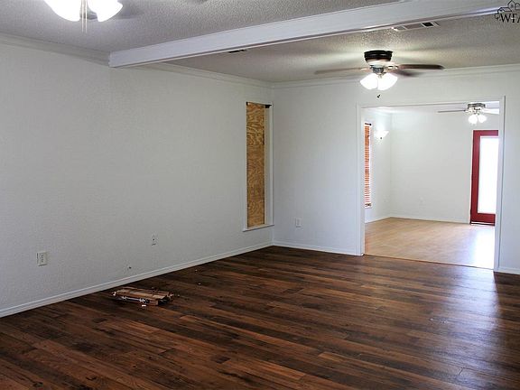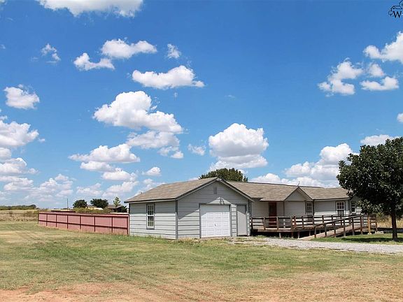 Just outside of Wichita Falls city limits with plenty of room to grow. This 3 bedroom home sits on just over 2.2 acres. Large walk-in closet in master bedroom with on-suite, updated bathroom. Recent updates include: new flooring, fresh paint throughout, new appliances, new ceiling fans, and updates in the hall bathroom. Extra large utility room provides abundant storage. Storm cellar in back yard. New roof is 4 years old.