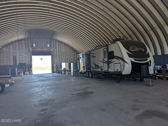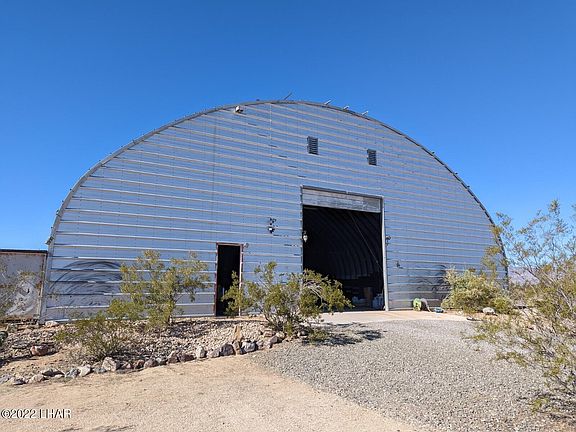 Want to live off the Grid! This is for you. 6000 Sq Ft Steel Building (60x100) with 14 Ft Doors on 56 Acres. 2 14 Ft Doors - One at each end of Building. All Solar - Owned. Well Plus 500 Gallon Water Tank. Septic Tank. RV Hook Up! Mobile Home on property is a tear down - No Value. 4-5 Acres are fenced with fenced entrance to property. This is a rock hounds paradise! Lots of quartz! The possibilities are unlimited!
