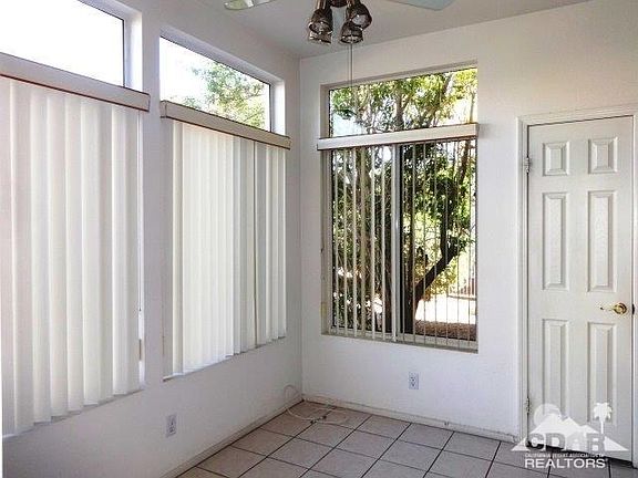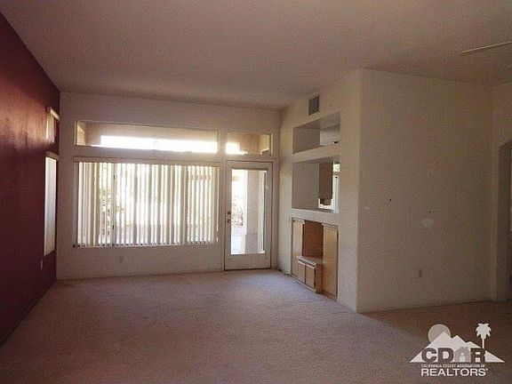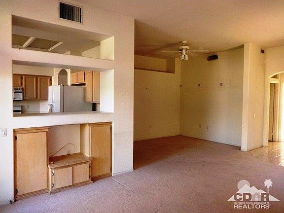 HUD Owned Christofle plan in Del Webb Sun City in Palm Desert . 2 bedroom 2 bath home with 1283 square feet. There are two bedrooms, two baths, formal dining, kitchen and nook. The back yard has a covered patio and concrete decking. There is mature desert landscape with citrus trees. The 2 garage has built-in storage. Rear Yard w/Low-Maintenance Lush Foliage. Perfect for either a full time home or seasonal desert retreat! Sun City is an active 55+ community. This community offers championship golf, tennis, a clubhouse, restaurants, clubs, and activities to suit everyone! Come and enjoy country club living in beautiful Sun City!