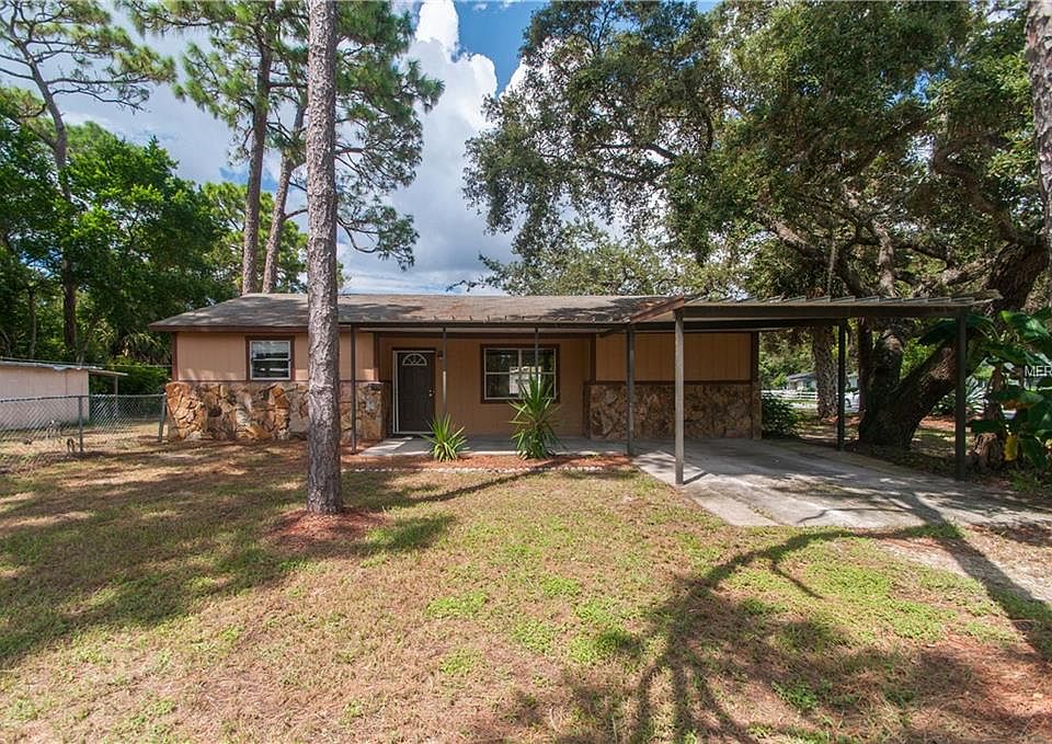 3 bedroom / 1 bath home on 1/3 acre lot. The lot has huge pine and oak trees and plenty of room for cars, boats, a pool, the options are endless. The setting feels rural, not far from Starkey Wilderness Park, but is close to downtown New Port Richey and the amenities of US 19. The interior features a large open living room / kitchen space - perfect for entertaining. There are two bedrooms on the left side of the house, both of which feature new carpet. The common bathroom is also to the left of the living room. On the right side of the house, there is a large utility room and a third bedroom. There are sliding doors to the backyard from the dining room. Make an offer today, it won't last long. Contact listing agent for more information - 727-216-8210