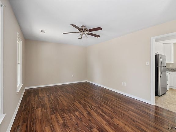 Situated on a corner lot, this move-in-ready home offers 3 bedrooms, 1.5 baths, and a large, fenced backyard on a quiet cul-de-sac. This home features fresh paint throughout the interior, new carpet on the stairs, and a freshly painted exterior with new shutters! Stepping inside, you’ll be greeted by the cozy family room with laminate plank flooring and a ceiling fan/light combo. The light and bright kitchen features granite countertops, a microwave, and a stainless steel refrigerator to convey. The adjacent dining area offers a great space for entertaining as well as everyday dining. Features of the dining area include a wall of built-ins with a dry bar area, a bay window, ceiling fan/light, and access to the backyard. Tucked at the back of the home is a flexible space with laminate plank flooring and a ceiling fan/light combo — ideal for a home office or a second living area. A half bath and a spacious laundry closet with shelving complete the main level. Traveling upstairs, brand-new carpet leads to three bedrooms. The primary bedroom features dual closets, laminate plank flooring, a ceiling fan/light, and direct access to the fully renovated hall bath. The newly renovated full bath features new laminate plank flooring, a new vanity, new toilet, new tub/shower combo, new hardware, and a linen closet. A second door from the hall offers convenient access to bedrooms two and three. Bedrooms two and three feature laminate plank flooring, closets, and ceiling fan/light combo. Outside, the spacious rear yard offers a concrete patio, a picket fence, and a storage shed to convey. Conveniently located along the Hull St corridor, this home offers easy access to area shopping, dining, and entertainment. Don’t miss the chance to make it your own! Roof 2019, HVAC 2024.