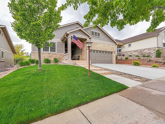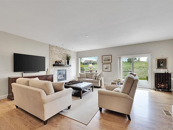 Outstanding single-family ranch brimming with open-space views in the fantastic 45+ community of Heritage Eagle Bend! The home is primed for entertaining with an enviable open floorplan and an inviting flow. The chef's kitchen has been completely redesigned and remodeled for contemporary tastes, featuring a six-burner gas range, stainless steel appliances, granite countertops, and a stone subway tile backsplash. Share a meal on the eat-in island, or host a holiday dinner to remember in the open dining room. Gleaming hardwood floors flow throughout the living space, cloaked in natural light from oversized windows. Enjoy chilly evenings in front of the custom fireplace, or embrace indoor-outdoor living as the living room connects to the home's impressive deck. The main-level primary bedroom exudes approachable luxury, featuring elegant tray ceilings, sweeping views of open space and golfing green, room for a seating area, and an outstanding fully remodeled en suite primary bath. Every day will feel like a spa day with a soaking tub, stand-up rain shower and oversized walk-in closet with custom organizers. A main-level office invites a productive day's work, and the convenient main-floor laundry is sure to make chores a breeze! The sprawling basement bonus room creates the perfect space for game nights and movie nights. Guests are sure to feel right at home with a convenient basement bedroom and full bath. Start your mornings on the deck soaking in unobstructed views of the golf course, coffee in hand. A retractable awning is perfect for keeping cool on sunny days! The oversized finished two-car garage is a hobbyist's paradise, featuring epoxy flooring, ample lighting, a workspace with storage, and room to park your golf cart! Heritage Eagle Bend residents enjoy premier golfing and a top-rated restaurant just steps from home. Just 5 minutes from the Southlands Mall, enjoy world class shopping, dining and entertainment at your fingertips.
