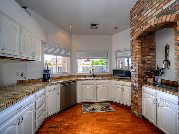 ABSOLUTELY ADORABLE 3 BDRM, 2 BATH, 2 CAR GARAGE ON A HUGE CORNER LOT WITH RV PARKING & RV GATE!! OPEN CONCEPT FLOORPLAN IS IDEAL FOR ENTERTAINING -- SPACIOUS, GOURMET-STYLE KITCHEN LOOKS OUT ONTO FAMILY RM WITH BEAUTIFUL WOOD BURNING FIREPLACE, AND OPENS TO THE SEPARATE DINING RM. HOME BOASTS SOARING HIGH VAULTED CEILINGS THROUGHOUT AND A WONDERFUL MASTER BDRM SUITE WITH SEPARATE EXIT TO BACKYARD, DUAL VANITIES IN THE MASTER BATHRM, A SOAKING TUB, AND SEPARATE SHOWER. ALL SECONDARY BDRMS/ BATHRMS ARE GENEROUSLY SIZED, AS WELL. GORGEOUS, LUSH GREEN LANDSCAPE IN THE FRONT YARD AND HUGE RAMADA/ SITTING AREA, DESERT LANDSCAPE, AND SPECTACULAR FENCED PLAY POOL + ROCK WATERFALL/ WATER FEATURE IN THE BACKYARD. THIS HOME IS A MUST SEE AND WON'T LAST LONG!!