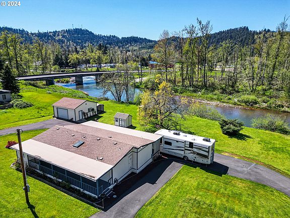 Don't miss this serene retreat with Row River frontage, where you can fish from your own backyard and enjoy the peaceful sights of herons, eagles, osprey and other wildlife. The large covered porch and gazebo by the river offer fantastic spots for relaxation and taking in the beauty of your surroundings. Pride of ownership is evident throughout the property with the well maintained home, large shop space and lovely grounds. The fully insulated garage/shop with power adds practicality and versatility, while the new $30k driveway ensures ample parking space for all the vehicles including the RV with hook-ups. This property is a special place where one could truly unwind and enjoy the tranquility of nature. Open House 4/20 12-2pm, 4/21 12-2pm