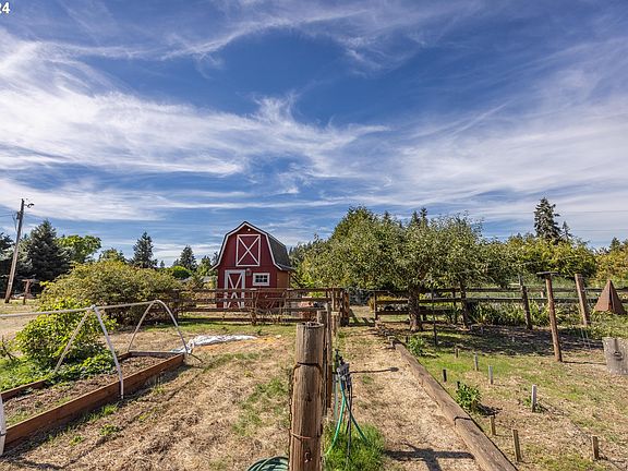 Peaceful ~1 acre country property with gorgeous views features single level ranch style home, shop, small barn, orchard, pasture and greenhouse. The 3 bedroom, 1.5 bathroom home w/fireplace includes separate dining area, kitchen w/tile, pantry, trash compactor. Two car attached garage plus detached 24x30 shop with two tall bay doors provides plenty of room for toys! Fenced yard with rose bushes, raised beds and a variety of fruit trees. Ideal location only 10 minutes to town and within walking distance to the 14 mile Row River Trail. Easy access to miles of trails for walking, jogging, biking, horseback riding!