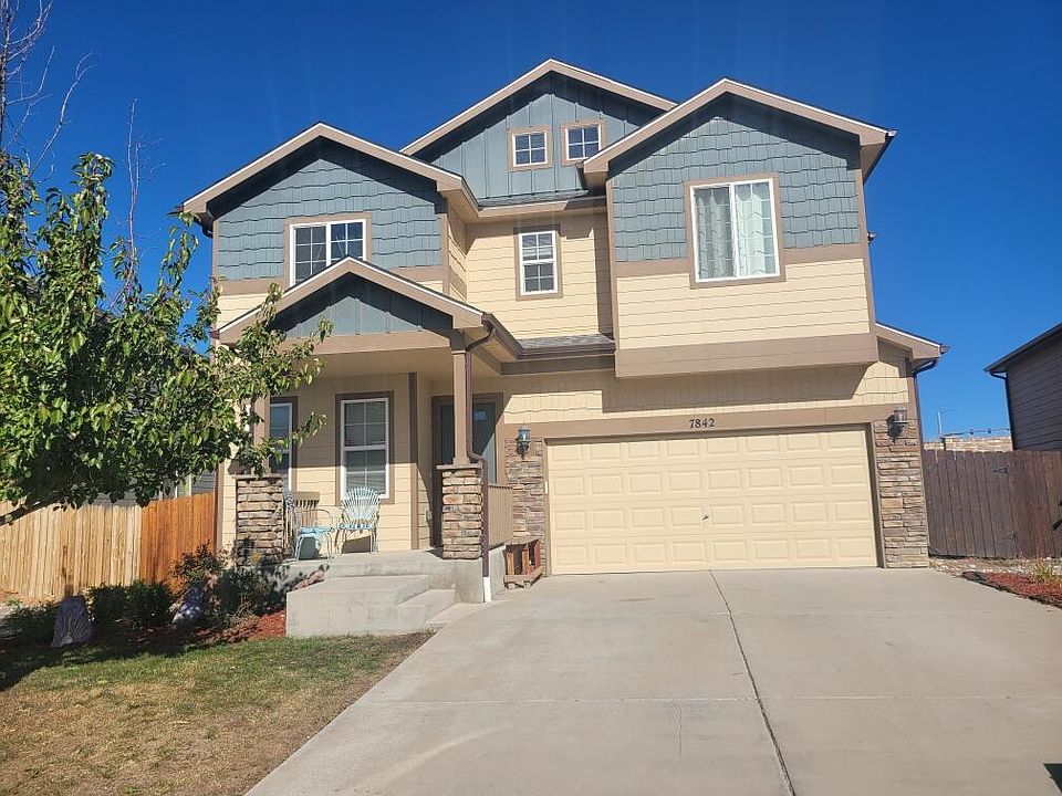 Beautiful home conveniently located to Ft. Carson! Gorgeous wood floors in kitchen and dining! Stainless steel appliances! Open floor concept with the kitchen looking onto the living room, perfect for entertaining! Office area on main. Large master with walk-in closets and 5 piece adjoining bath! Central AC! Large secondary bedrooms. Huge unfinished basement Fenced back yard that backs to open space and has Pikes Peak views! 1 Dog allowed in home w/ applicable pet rent and pet deposit NO cosigners