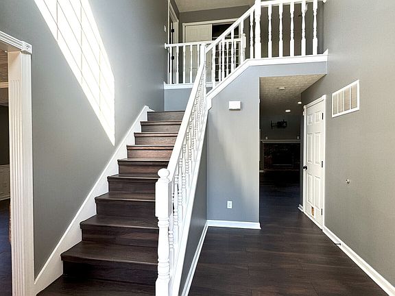 Beautifully updated 5 BDRM Home with a spacious BDRM on the Main Level! New Roof in 2024! Home Updated in 2020 w/fresh paint, engineered hardwood flooring throughout, Kitchen facelift with granite, new stainless steel fridge, stove, & microwave hood, new sink & painted cabinets! Tray ceiling, crown molding, wainscoting & accent columns in the Family Room & Dining Room offer the perfect custom touch! Cathedral ceilings offer a more spacious feel! Three separate gathering areas with the Great Room, Family Room & Loft offer plenty or space for everyone! Beautiful Brick Gas Fireplace in Great Room! 4 Spacious Bedrooms upstairs with walk-in closets! Primary BDRM features a custom tray ceiling, large walk in closet, double vanities & sinks, whirlpool tub, & sep walk-in shower! Breakfast Room, Kitchen Center Island & Formal Dining Room offer plenty of dining space! Laundry Room is on main level with utility sink, cabinets, & washer & dryer stay! Large 20x14 freshly painted deck is perfect for outdoor entertaining & relaxing! Backyard is fully fenced with a privacy fence! Large backyard with raised garden, updated landscaping & the playset stays! Front entry has updated landscaping! 3 car fully finished garage for parking & plenty of storage! Great neighborhood & close to shopping, restaurants, & schools!