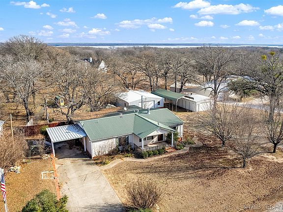 Charming home, less than a mile from Lake Texoma! This three bed, two bath home is meant for outdoor living and adventure, with a HUGE back deck, large yard, TWO large metal buildings for all your vehicles, boats-even covered RV parking! Take your golf cart down to the lake, entertain on your back deck or just kick back and relax-this is the perfect spot. A 10 min drive to Chickasaw Pointe Golf Club, West Bay Casino, Alberta Creek Marina and Lake Texoma State Park. The refrigerator, washer and dryer and water softener all convey with the home! Call your favorite REALTOR and check it out before it's gone!