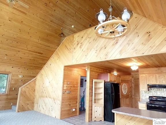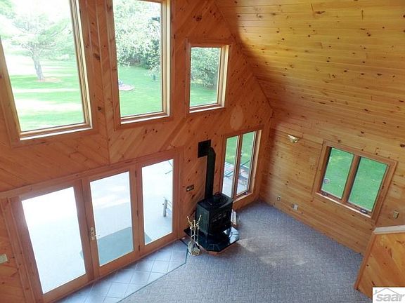 This beautiful property enjoys a very private setting with plenty of peace and quiet. It has a chalet-style look from the front, which overlooks a great patio, and a perfectly groomed yard that looks like a small golf course. The whole property has so much character, from the comfy breezeway between the house and the garage, to the nice master suite located in the loft. Most of the interior is finished with tongue-n-groove pine, with ceramic tile floors in the kitchen, dining area, hallway, laundry room, bathrooms and breezeway, and carpeting in the livingroom, and bedrooms. There's 5 ceiling fans throughout, and in the living room there's a free-standing fireplace that heats the whole house. The central heating system is a commercial boiler that heats the house with in-floor heat, and the water. The garage is 30' 3" x 24' deep. The storage shed is unique. It's a shipping container, set back in the trees and painted on the outside to blend in with the trees.