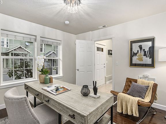 Incredibly spacious and beautifully remodeled townhome with an attached 2 car garage. Thoughtful updates include a primary bathroom remodel with a tiled shower, dual shower head, new vanity & exhaust fan with a Bluetooth speaker. All new windows. Hardwood floors gleam on all levels with new baseboards throughout. Perfect floorplan for home office. Great location with easy access to I-5 or 217, Bridgeport Village, nearby parks/dog parks, and a short stroll to downtown Tigard.