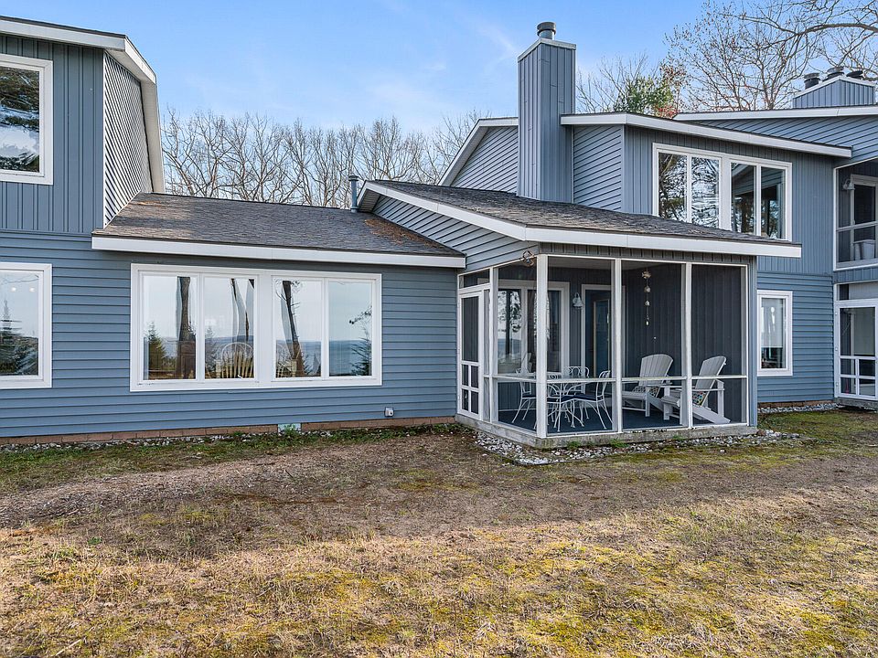 Indulge in the breathtaking northward view of Burt Lake from this 2-bed, 2-bath condominium. Conveniently situated just west of Indian River, with Petoskey and Harbor Springs just a short drive away, you'll also have easy access to thousands of acres of Michigan state land across the street. Step down to the sandy south shore swimming area or utilize your designated boat hoist spot at the dock. This unit has no unit above, offering added privacy, along with an open living space capturing expansive views from the primary living space. Cozy up by the gas fireplace in winter or unwind on the waterside screened porch in summer. Complete with a private garage for ample storage, this updated 18-unit development ensures affordability without compromise. Short term rentals are prohibited.
