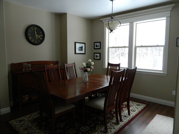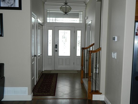 Wasilla Creek in backyard. Upgraded custom kitchen cabinets, granite counter tops, crown molding throughout, fireplace, tiled master bath w jetted tub, granite bathroom vanities, open concept family room and kitchen, stainless steal appliances, and master bedroom with beautiful coffered ceilings. Den/office, laminate flooring, and large garage w space for 3 cars.