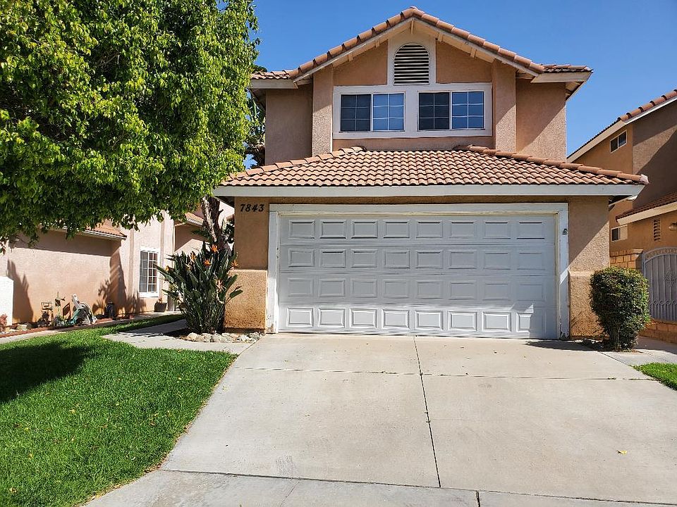 Two Story home that is located in a gated community! Home features 4 bedrooms plus and office and 2.50 bathrooms. Formal living room with tile flooring, Family room with fireplace and tile flooring. Kitchen updated with stainless steel appliances, granite countertops, eating area and breakfast bar. Laundry room. Spacious master bedroom and bathroom with large tiled shower and large walk in closet. Backyard with open lattice wood patio. 2 car garage with direct access. Located on a cul-de-sac, and gated community has a community pool and spa. Located near shopping centers.