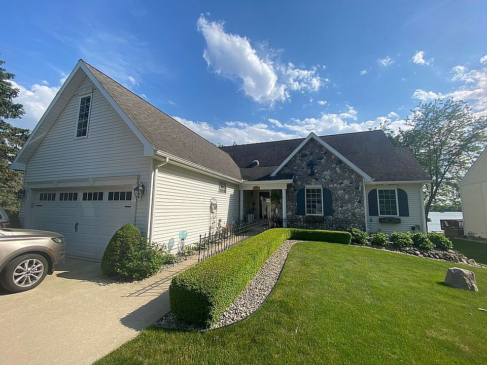walkout basement, retractable awning over vinyl deck, extra long dry walled & insulated garage, water softener, Reverse Osmosis water system, special water filter, granite counter tops in kitchen, humidifier, washable furnace filter, garage door opener with keypad, wired for surround sound, whole house attic fan, crown moldings, bay window, casement windows, extra wide driveway, Andersen casement windows, Andersen door walls, 8ft. door wall from walkout, storage loft above the garage with drop down ladder,