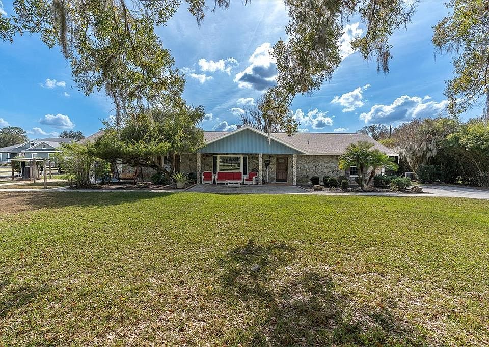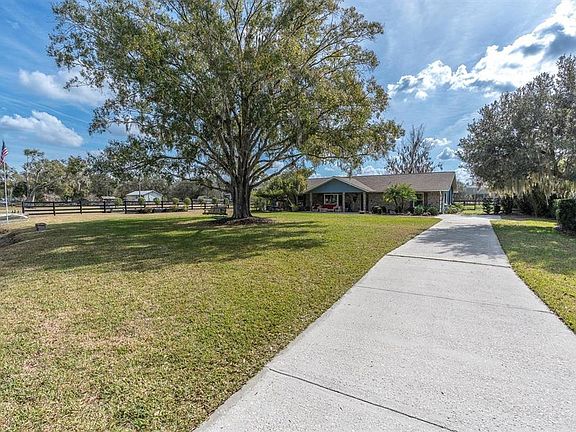 Think homestead living, home-based business, and private gatherings from the start—2.87 fully fenced acres with no HOA give you the freedom to do it. The current owners have taken pride in this property and it shows: well maintained, thoughtfully upgraded, and truly turnkey. A general home inspection has already been completed, and the report is available to serious buyers upon request. This 4BR/2.5BA ~2,841 sq ft home meets the land with comfort and style. As you enter, a stacked-stone wood-burning fireplace anchors the living room, and a bay window frames peaceful country views. The granite kitchen offers generous workspace; fresh interior paint in the bedrooms, updated flooring in the main living spaces, and updated bathrooms refresh the home. Impact-proof windows throughout include a lifetime transferable warranty, and major updates—roof, AC, electrical panel, and water heater—add confidence. A double-insulated screened lanai ties everyday living to the outdoors. Outside, perimeter fencing and a fully stocked pond with a solar-lit dock set the scene; there’s also an above-ground pool, children’s playset, chicken coop, and room to roam. A 36'×42' powered workshop with lighting, 150-PSI air compressor, and a welding-capable plug is ready for projects, plus a 30-amp RV hookup, covered RV shelter, two powered sheds, and a gated driveway. Security cameras convey. If you need multigenerational space, add an additional mother-in-law suite (ADU) for a true family compound. Animals welcome—suited for horses, cows, goats, and pigs. Conveniently located close to I-4 for an easy commute to major cities. All measurements, zoning, and intended uses to be verified by the buyer with the county.