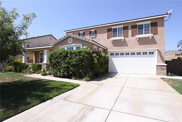 Best priced home in Eastvale with excellent curb appeal. Close walking distance to elementary school, parks, and newly built Eastvale community center. Come home to a spacious 3 car garage. Plenty of street parking. No neighbors from across, parking all along the street. Front lawn is nicely kept to perfection. Entry to the home with an elegant two tone paint to exemplify the exotic staircase. Immediately enter to a large living room and oversized dinning room enough to serve 10 of your guests. The kitchen has tons of cabinet space and great for the cooks. Family room and kitchen is opened for you to entertain your guests. The backyard has a covered patio to give you shade during the summer time and host parties of all occasion. There is a bedroom downstairs, great for guests. 4 more bedrooms up stairs. Huge master and walk in closet. Bathroom is where you can relax in the spa tub. Don't miss this opportunity.