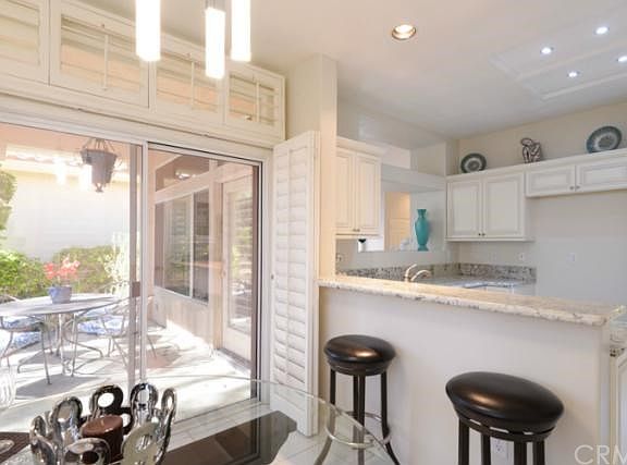 Sun City Palm Desert. This home has it all and then some. 10' ceilings, Fully Remodeled Kitchen with custom cabinets, granite, new plumbing fixtures and stainless steel appliances. Updated Chandeliers in the dining and breakfast areas. Baths are also fully remodeled with custom cabinets, granite counters, new faucets, LED lighting and glass shower doors. Freshly painted interior. Whole house electrostatic air filter, keyless entry on the front door, Plantation Shutters throughout. Enclosed backyard with covered patio and automatic lighting in both the front and back yards. Washer and Dryer are included. The perfect location allows you walking distance to the main clubhouse. The 2 additional clubhouses, 2 golf courses, shopping, dining and banking are accessible via golf cart. No need to access the public roads !! This home is a true showplace and a must see. Sun City offers Indoor/Outdoor Pools, State of the Art Fitness facilities, restaurants, meeting rooms, library, ballroom, auditorium, billiards room, plus a private RV lot. And don't forget the low HOA dues include fiber optic TV service with premium channels of 16 Showtime and 14 HBO channels !!!