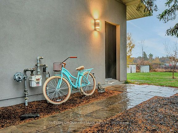 Welcome to 7844 Bleeks Road - Country Luxury in the Heart of Munster Located in the charming village of Munster and within walking distance of Saunders Farm, this beautifully updated bungalow sits on a tranquil two-acre lot that perfectly blends country serenity with modern comfort. Originally renovated in 2014 and expanded with a stunning addition in 2018, the home showcases quality craftsmanship, thoughtful design, and an inviting open-concept layout ideal for family living and entertaining. Step inside from the side entrance into a wide hallway that leads to a bright, spacious living area where polished concrete floors with radiant heat create warmth and elegance. The chef's kitchen features stainless-steel appliances, a gas stove with pot filler, and an abundance of counter space, flowing naturally into the dining and living rooms filled with natural light and scenic views of the surrounding greenery. The home offers three bedrooms and three full bathrooms, including a generous primary suite with a beautifully renovated ensuite completed in 2025. The second bathroom, completed in 2018, doubles as a convenient laundry space. A fully finished basement extends the living area and sits beneath the 2018 addition, perfect for a recreation room, gym, or home office.Outside, a wrap-around deck overlooks a gently sloping backyard surrounded by trees, offering the perfect setting for outdoor gatherings or quiet mornings with coffee. The property features a drilled well, a new septic system installed in 2018 and pumped in 2020, a metal roof on the main home, and new shingles and siding on the addition. Ample driveway parking provides space for family and guests alike. Only twenty minutes from Highway 417, this property offers the best of both worlds - peaceful country living with convenient access to Ottawa's west-end amenities.Easy to show. Heated thermal floors on one side and forced air on the new additions. 2 furnaces, 2 Ac, 2 Hot water tanks