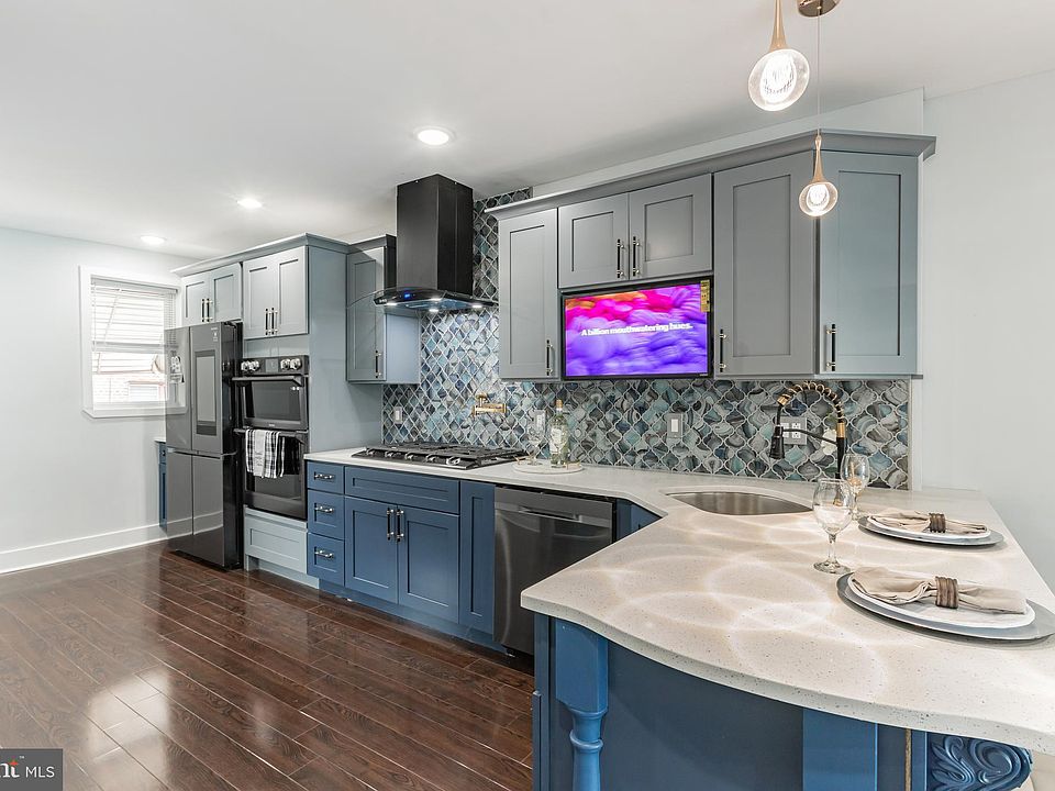 Price IMPROVEMENT! This renovated Cedarbrook row features gleaming hardwood floors, remodeled kitchen with smart appliances, flat screen TV, and wine fridge. The newly installed biofuel fireplace adjoins the kitchen and open floor plan living area giving a warm and cozy feel! The enclosed sun porch with floor to ceiling bay window beams with natural light! The main level also has a half bath, perfect for guests or if you're just too lazy to go upstairs! The second floor has new carpet, 3 bedrooms, and a remodeled, ultra-modern bath with a stand-up shower and soaking tub to relax after a long day! Basement is partially finished with bar, half bath, and laundry hookup.