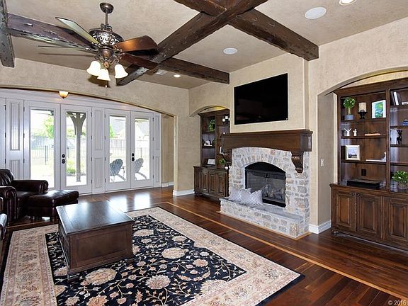 Former Parade Model! Designer finishes, gourmet kitchen w/island, family room w/stone fireplace & built-ins, walnut floors, patio w/outdoor kitchen & fireplace, massive yard, study, game room, media room, Jenks schools, and neighborhood amenities galore.