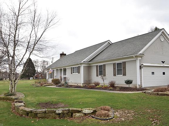 Serene country living in Canfield! 1.5 acres. Four bedrooms. First floor laundry. Beautiful custom ash built-in bookcases surround a floor to ceiling brick fireplace in the sunken great room. A spacious island kitchen, complete with custom ash cabinets has plenty of storage space and a stainless refrigerator (3 years) and stainless oven (1 year). Just off the great room youll enjoy the bright and cheery sun room with newly installed baseboard heating, so you can enjoy this wonderful space all year round. Youll appreciate the first floor bedroom, which can be an office as well. On the second floor youll find three good sized bedrooms with ample closets and a full bath. The furnace and AC are just four years old. A triple osmosis water purification system, 35 year wind velocity shingles, and a 220 electric line in the second double garage all add to the value of this great property. A home warranty for peace of mind is included.
