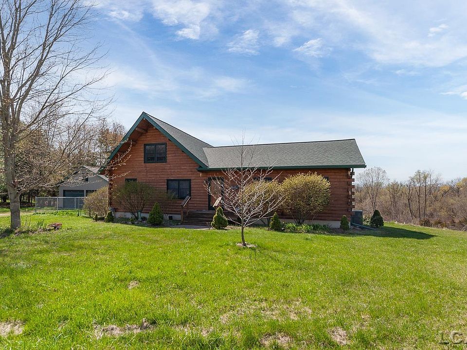 Light filled contemporary log home has 3 bedrooms, 2.5 baths and a full walk out basement. Home has an open floorplan and is situated on 5 gorgeous acres that overlooks a 10 acre nature preserve. Great room, dining area, kitchen, bedrooms and 2 baths are all on the entry level. There is a large loft on the second level. The excellent kitchen has lightly stained hickory cabinets and a large free standing wood island; the appliances are stainless steel. The Great Room boasts a huge window, a vaulted ceiling and a door that leads out to the back deck where you can relax and enjoy the scenic views. There are wood floors in most of the home, tile in first level bathrooms and carpet in the loft. The lower level has lots of natural light with large walk out to patio . The laundry, ½ bath and utilities are in the basement. New roof in 2022. There is a large 40 ft x 60 ft pole barn on the property. Home is in Northfield Township; children attend South Lyon schools. Conveniently located near Ann Arbor. Property has 15 acres. Property will be deeded to not allow any construction on the land.