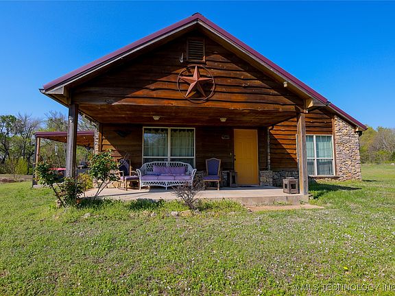 area with wood burning stove. A large pond off the covered patio is stocked and adds to the charm of this property;