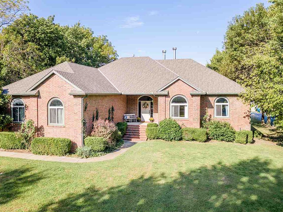Beautiful 7-bedroom, 4-bath house with a 3-car garage on 1.7 acres in Haysville schools! This gem has all the benefits of country living close to the big city. This home has Class 4 Impact Resistant shingles, new granite counters, new backsplash, new interior paint and a new HVAC system. A tree lined drive will greet you every time you come home. Step inside the foyer and be amazed at the large living space anchored by a fireplace and custom built-in cabinets. Enjoy gazing out the big picture windows to watch the wildlife. A few steps and you’ll be in your new kitchen with tons of cabinet and counter space along with a walk-in pantry. There’s bar top seating for a quick meal and plenty of dining space for a large table for any size gathering. Oh, and more pictures windows! The main floor has the master suite of your dreams. There’s plenty of room for a king size bed, a sitting area, private access to the deck, bonus laundry space, large walk-in closet, and a large bathroom with private tub and shower. You read that right. A separate laundry space in the master suite! The main floor also has two bedrooms and a bathroom. Head downstairs to find a rec room with a wet bar, a reading nook and a large family room with another fireplace along with custom built-in cabinets. The basement also has 4 bedrooms and 2 bathrooms. Don’t forget to see the world’s largest storage room. Over 1,000 sq ft of unfinished space under the garage! There’s also a bonus office/theater room. The basement also has a water softener and Reverse Osmosis system. Step outside on your covered deck and enjoy mother nature. There’s plenty of land to pretty much do whatever you want. It’s great for kids, pets or anyone who just wants their own piece of heaven.
