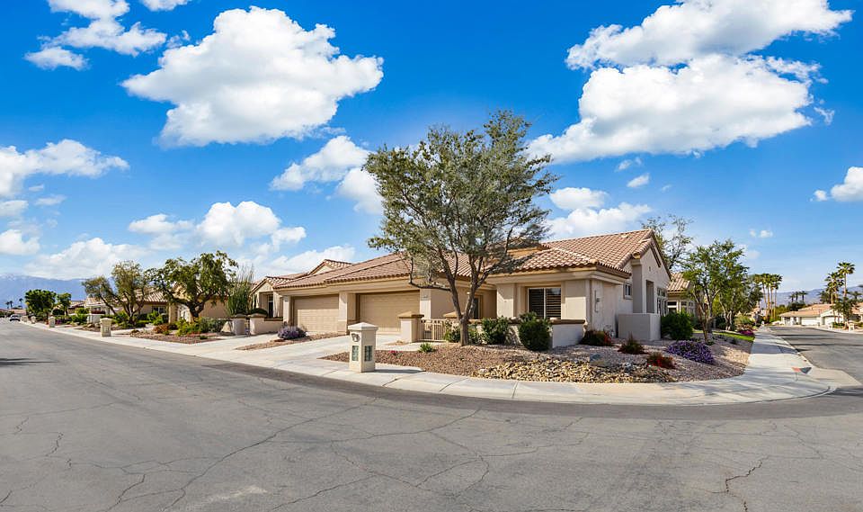 Welcome to Sun City Palm Desert, a vibrant 55+ community offering a wealth of amenities to enhance your active lifestyle. This charming Opal floorplan presents 2 bedrooms and 2 bathrooms, thoughtfully designed with excellent bedroom separation for privacy. Enjoy the spacious layout, boasting tile flooring throughout the entire home. The corner lot is a premium location. This attached single family home location includes HOA maintenance of your landscaping. Residents of Sun City Palm Desert indulge in golf, pickleball, on-site dining options, and a plethora of activities and clubs, fostering a lively social atmosphere for an enriching lifestyle experience.