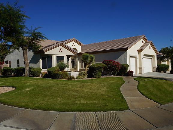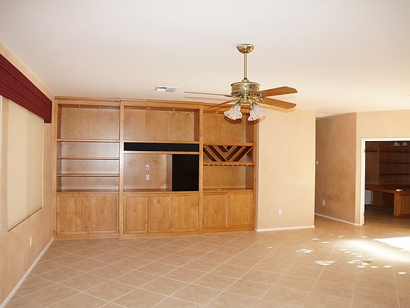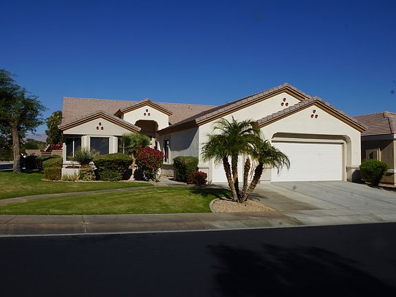 This St. Croix model features an open floor plan with lots of built-ins in living area, office/den and master bedroom. Features ceiling fans throughout, granite countertops, tile floors, and a 2 car garage with a third golf cart spot. The dishwasher and refrigerator are paneled to match cabinets. This home is ready to move into today. Part of Sun City Palm Desert, a 55+ Community.