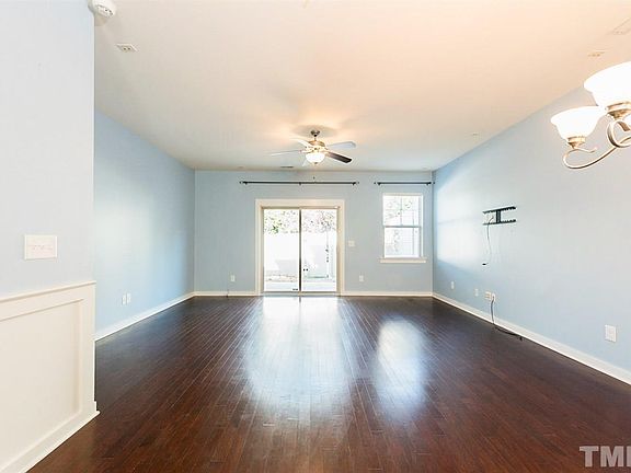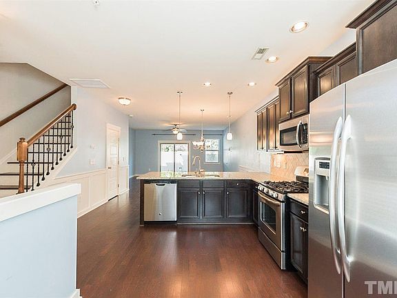 Built-in 2013, this Raleigh two-story townhouse offers gas heating, hardwood flooring, stainless steel appliances, granite kitchen countertops, a breakfast bar, a patio, and off the street parking.