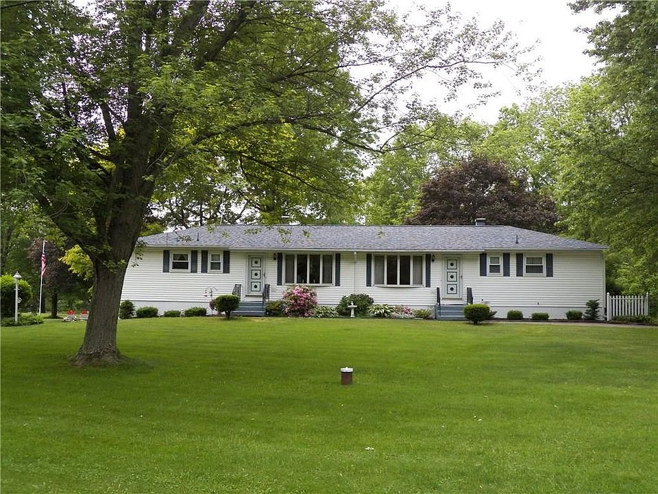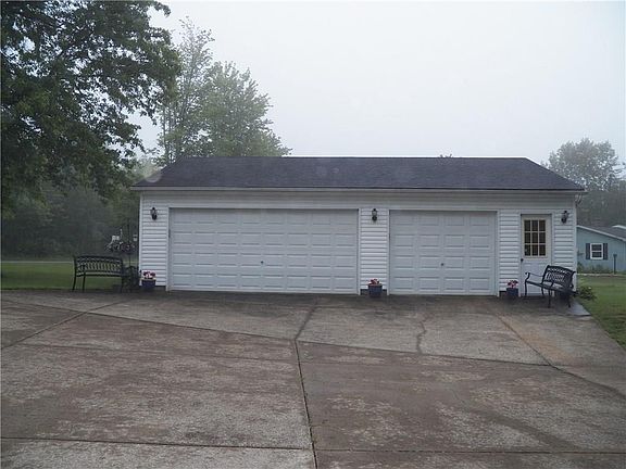 Home is currently a 2 unit- East side offers 2 bedrooms, bath, large applianced Kitchen & Living Rm. West side consist of 3 bedrooms, Bath, Living Rm & eat-in applianced Kitchen with access to full finished basement with French doors (2) opening out ground level to patio. Plus 2 car integral garage. Great In-Law Apartment or convert to single family home. Separate utilities. Many updates - very clean. Also HUGE 3 bay detached garage with elec/water. All on over 2 Acres. Make the call.....