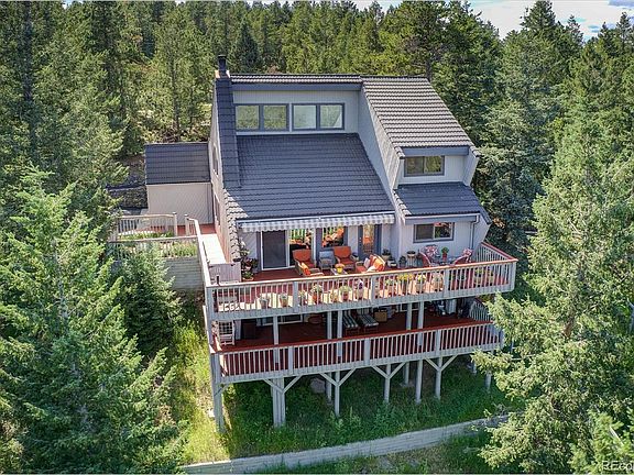 Beautiful Four Bedroom, Four Bath, Mountain Contemporary on 3 Private and Pristine Acres. Located in sought after Evergreen Meadows, this one is private from the road and so quiet. The same owners have loved living here for the last 16 years and it shows. Remodeled, Updated and Upgraded! The enchanting fenced Garden Area leads you to the Covered Front Porch and entry. The main level features the wonderful Great Room with multiple windows and patio sliders that fill this home with natural light. Vaulted Ceilings and the Marble Surround Wood Stove. Walk-Out to the Full Length Deck with expansive views and auto-retractable awning. It's awesome! The Dream Kitchen boast Maple Cabinets, 10 Foot Entertainer's Island, gorgeous Slab Granite, Dual Viking Stoves, Dual Cook Tops, Gaggenau, Sub Z, Prep Sink, Walk-In Pantry, Coffee Booth, Open Dining Room and more! Remodeled Powder Room. And the perfect Office or Den area. Upstairs you will find the Master Retreat with Vaulted Ceilings, Spa-Like 5-Piece Bath and huge Walk-In Closet. Second Bedroom with En-Suite Bath. Downstairs you'll find the Walk-Out Lower Level with access to the second Full Length Deck! Two Big Bedrooms, Updated Full Bath, Big Laundry Room and good sized Exercise Room. Plus the finished garage, extra side parking area, beautiful Hardscape and exterior lighting. Fenced Dog Run too. The lot is pristine with dramatic rock outcroppings. It's your own private forest. This is truly a must see to appreciate property!
