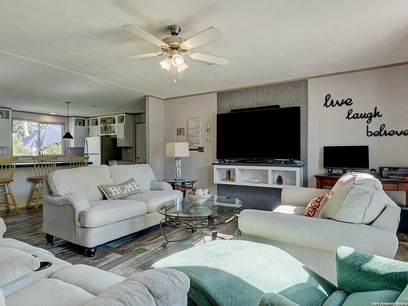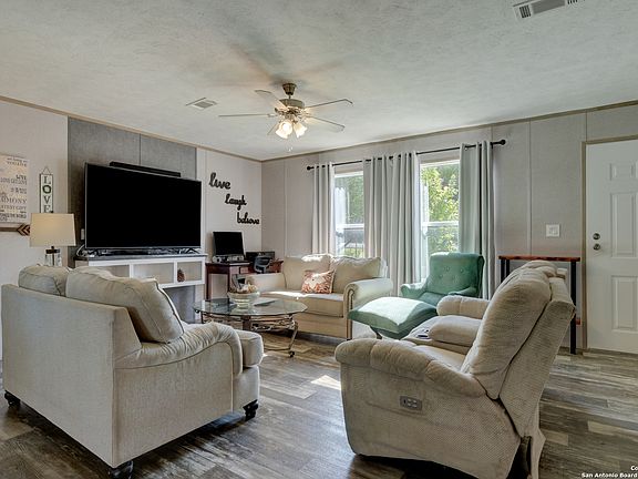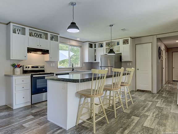 Imagine coming home each day to your own slice of the Texas Hill Country. The drive winds in on gravel, framed by mature trees that offer both shade and privacy. As you pull up, you notice the fenced area to the side - a perfect spot for your dog to run or for the garden you've always wanted - and beyond it, open space waiting to be enjoyed. Stepping inside, natural light streams through the large windows, filling the living room and highlighting the wood-look floors that flow throughout. The open layout makes it easy to move from the living area to the dining room and kitchen, where the spacious island invites casual meals, conversation, and gatherings with friends. With modern appliances and generous cabinetry, everything you need is right at your fingertips. At the end of the day, retreat to your primary suite. The transom window lets in soft daylight, and the walk-in closet offers room to keep everything organized. In the bath, dual vanities, a separate shower, and a soaking tub create a private retreat that feels both comfortable and spacious. Two additional bedrooms and a second bath, tucked on the opposite side of the home, provide privacy for family or guests. Daily life runs smoothly here with a laundry room that includes exterior access, space for a freezer, and a folding area. And when it's time to unwind, the newly built deck is waiting - ideal for grilling, relaxing under the umbrella, or gazing up at the stars on a quiet Hill Country night. Beyond the deck, the backyard stretches out with mature trees, a storage shed, and space to spread out. What makes it even more special is the setting. With no HOA, you have freedom, and the neighborhood brings its own unique charm. Birds, deer, and even peacocks often wander through the neighborhood, reminding you that this is a place where nature and home truly meet.