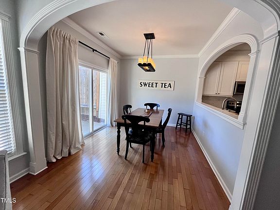 Nestled in the heart of Raleigh, NC, this captivating 3-bedroom townhome offers a blend of comfort, style, and convenience, perfect for modern living. As you step inside, you're greeted by an inviting open-plan living space, bathed in natural light, highlighting the elegant hardwood floors that flow seamlessly throughout the main level. The living area, with its cozy ambiance, is perfect for relaxing evenings or entertaining guests, seamlessly connecting to the dining area and kitchen. The kitchen boasts modern stainless steel appliances, granite countertops, and ample cabinetry, making meal preparation a delight. Upstairs, the master suite serves as a tranquil retreat, featuring a spacious layout, a generous walk-in closet, and an en-suite bathroom equipped with a dual vanity and a large walk-in shower. Two additional bedrooms offer flexibility and space for family, guests, or a home office, each with easy access to a full bathroom and ample closet space. The exterior of the home does not disappoint, with a charming patio area perfect for outdoor dining and relaxation, overlooking a beautifully maintained community landscape. Additional features include a convenient upstairs laundry, garage that provides ample parking. Located in a desirable Raleigh neighborhood, this townhome is just minutes away from vibrant shopping centers, diverse dining options, lush parks, and top-rated schools. Easy access to major highways and public transportation makes commuting a breeze, ensuring that this home is not just a place to live, but a gateway to the best Raleigh has to offer.
