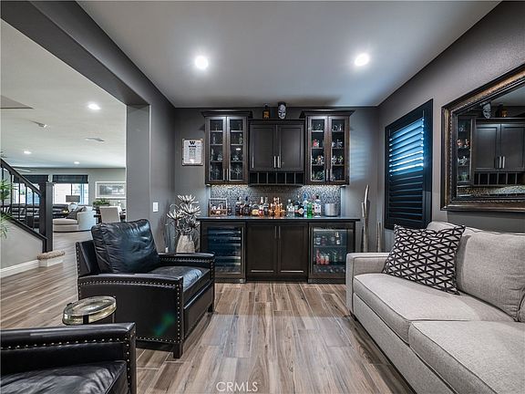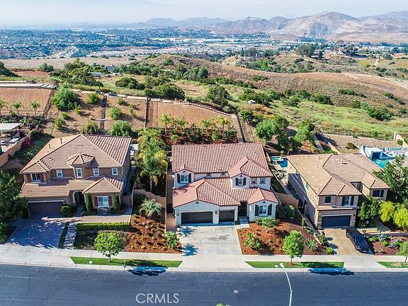 If it is a stunning VIEW and Spectacular backyard you are looking for --- This Is IT! Enjoy breathtaking views of the Sunrise & the Moonrise, plus the mountains of the Cleveland National Forest in the front and the city lights and San Jacinto mountain views from the back. The owners have meticulously upgraded every aspect of this home. Downstairs is a custom bar/seating area with built in cabinets, and a bonus game room/office. Also downstairs is a guest bedroom with its own private bath. Large formal dinning room, huge family room w/ fireplace. Gourmet kitchen island with upgraded Quartz counter tops, white shaker cabinets, walk-in pantry, and new appliances. Backyard has complete gourmet BBQ with cooler. A split level stairway leads to the upstairs, which features a game room, 2 bedrooms that share 1 bathroom, one bedroom with its own private bathroom. The Master Suite occupies almost half of the upstairs and has incredible views. Located in the Retreat - the Inland Empire's Premiere 24 hour manned, gated community.
