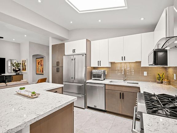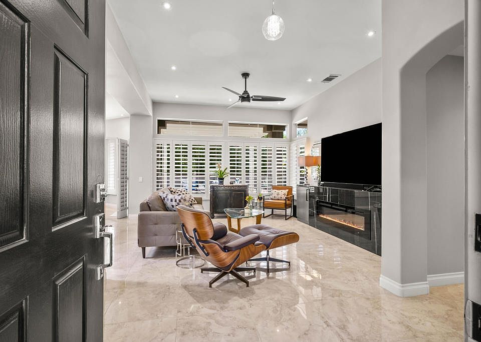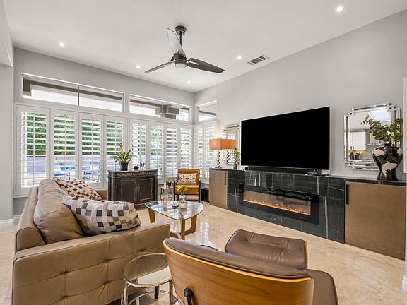Elevate Your Living Experience in this Designer's Dream Home with a Contemporary Twist: Welcome to unparalleled luxury! This One-of-a-Kind, fully remodeled Gorham plan 2BD/2BA home w/ office niche has undergone a comprehensive transformation, sparing no expense in quality and craftsmanship. With EVERY surface and corner meticulously updated, this home offers a complete reset, giving you a New Home Feel within a well-established community.Revel in 9 & 10ft ceilings, accented by new fans & LED lights. A contemporary, light & bright color palette elevates the home's aesthetic.The kitchen is a culinary haven: custom hardwood maple cabinets in dual-color lacquer, high-end pulls, soft-close hardware & extensive pull-out shelves for storage & trash/recycling. FORNO Pro-look appliances & quartz countertops complete this chef's dream!Upgraded baths feature new showers, cabinets, porcelain & stone finishes, quartz counters & modern lighting. High-rise toilets add a luxurious touch.Enjoy the outdoors on a large, south-facing private lot w/ EZ-care maintenance & two extended patios, accessible from the primary bedroom & the living areas.An attached 2-car garage offers storage cabinets & ceiling storage, washer/dryer incl. Some furnishings may be available outside Escrow. Sun City Palm Desert offers 2 championship golf courses, 3 clubhouses, well-equipped fitness centers, sporting options & much more. Homeowners enjoy two in-house restaurants & over 90 active clubs