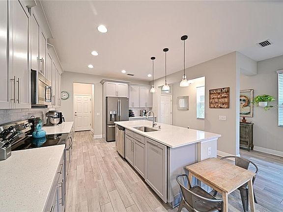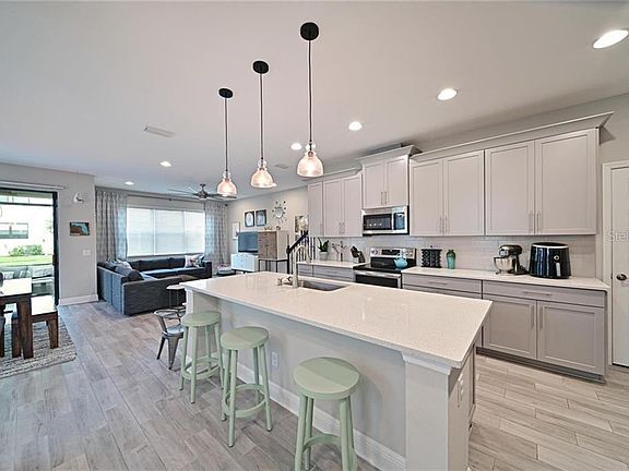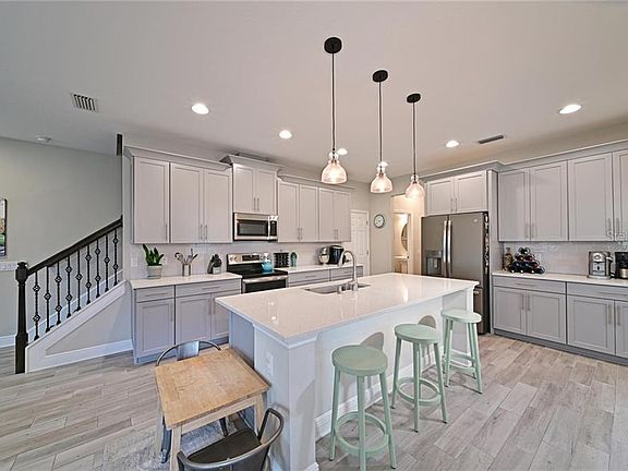 Prepare to fall MADLY in love with this GORGEOUS like-new end-unit townhome in one of the most convenient locations around! Enjoy your own two car attached garage, and beautiful maintenance-free curb appeal! You may be surprised to find out this is not the model! Adorned in soft grey tones, beautiful driftwood style tile floors, 42 inch cabinets, quartz countertops, stainless appliances, breakfast bar/island, spacious living area downstairs, half bath for your convenience and covered screened lanai so you can enjoy your morning coffee or evening cocktail in the fresh air- there's so much here to love (just to name a few)! Upstairs, you will find a cozy loft - perfect for your home office plus 3 bedrooms. The vast owners suite features an attached bathroom with seamless glass shower and stylish dual vanities. The two additional bedrooms provide plenty of space and share an ample sized bathroom also equipped with dual vanities & tub/shower combo. This gated community is super convenient for commuters and beachgoers alike! Amenities include a sparkling pool to cool off and float around in all summer long, private road and the low HOA includes exterior maintenance. Oh - AND NO CDD! Whew! (high five y'all) Come see this right away!!! You wont be disappointed! "All our dreams can come true, if we have the courage to pursue them" ~ Walt Disney