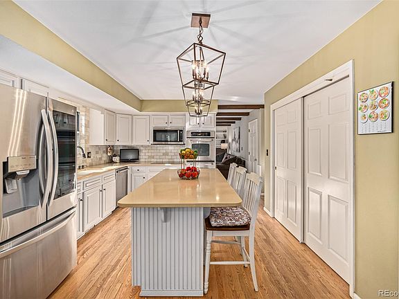 Perfect in every way! Step into a Nantucket dream with this enchanting 4-bedroom Sanford builder Hamilton model home, boasting a personal swimming pool and a backyard that you won't want to leave. Greeted by lush landscaping and a cozy front porch, you're welcomed into a world where sophistication seamlessly blends with comfort. The spacious formal living room offers a refined elegance, while the family room, with its rustic exposed beams and brick fireplace, becomes the heart of the home, perfect for both lively gatherings and quiet evenings. The kitchen, a culinary dream, is equipped with sleek stainless steel appliances, elegant slab quartz countertops, and an inviting island with an eat-in breakfast bar. The versatile den, adjacent to the main-level laundry room, provides an ideal space for a home office, a cozy reading nook or use to suit. The warm ambiance is further enhanced by the gorgeous wood flooring and abundant natural light throughout the main level. Ascending the softly carpeted stairs, you find tranquil bedrooms, including a serene primary suite with its own private en suite bathroom, offering a peaceful retreat. The home's architectural details and solid construction speak to the quality and care invested in creating a well-built, enduring residence. The magic of this home extends to the outdoor space, designed for al fresco dining and entertaining, making every moment spent outdoors unforgettable. Special luxury alert: *heated saltwater pool*, complete with an automated cover and built-in resistance jets for the ultimate exercise experience! Proximity to all transportation, DTC, downtown, and an array of hiking and biking trails, upscale shopping, and dining options, and award winning schools, this residence offers more than just a living space; it's a lifestyle imbued with savvy convenience. Seize this unique opportunity in one of Centennial's favorite neighborhoods, where every detail contributes to a harmonious and exquisite living experience.