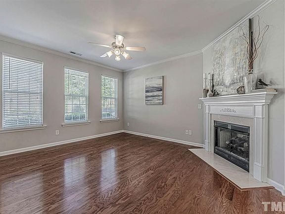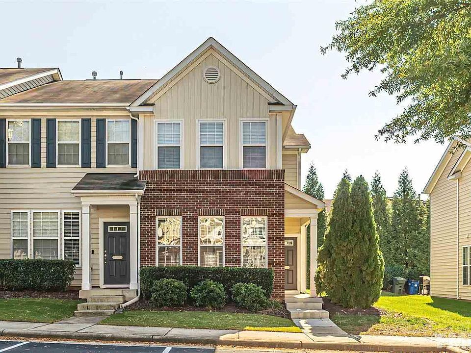 Bright and Airy END UNIT with open floor plan in POPULAR BRIERCREEK. Hardwoods throughout first floor. NEW INTERIOR PAINT. NEW CARPET. Gas fireplace in Living Room. Kitchen boasts expansive Solid Surface Counter tops, Stainless Appliances, 42" white cabinets, and Pantry. Master w/vaulted ceiling and Walk In Closet. Garden tub in master bath and tile floors in both bathrooms. Spacious patio with extra storage! Fantastic location close to RDU, RTP,540 and 40! HOA includes ROOF, POOL and Clubhouse.