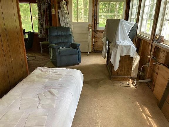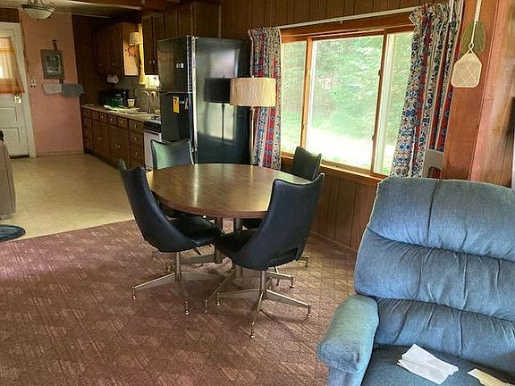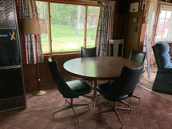 LULLABY OF THE LOONS! Let the loons lull you to sleep each evening in your rustic 2 bedroom cabin on the shores of picturesque prestigious Presque Isle Lake. The kitchen offers 20+/-' of oak cabinets which opens into the dining room, the two bedrooms both have closets, the bath has an older shower stall, which could be updated, and the living room, which was a porch, has been taken down to the studs and has cathedral ceiling, it needs to be insulated and drywalled or tongue and groove installed. Or, you could build your dream lake home on this site with 130' of lake frontage, with a new drilled well, a septic system sized for a three bedroom home plus a newer pole building already in place, the choice is yours. The loons are calling you, can you hear them??