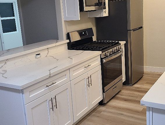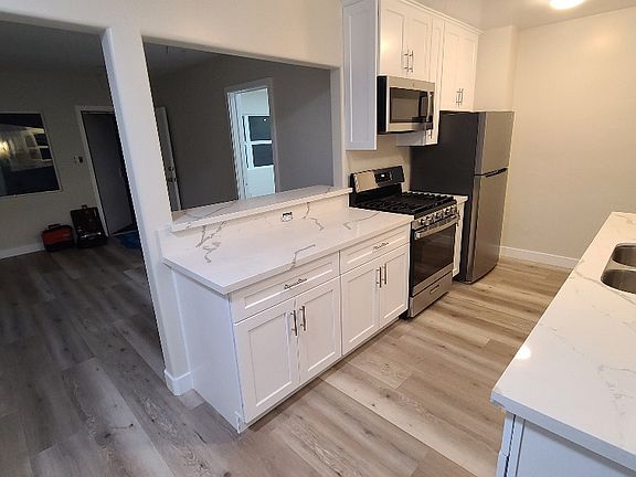 New roofQuartz counters and backsplashSeparate dining areaRemodeled bathroomGlass shower doorNew tiled showerNew white shaker cabinets