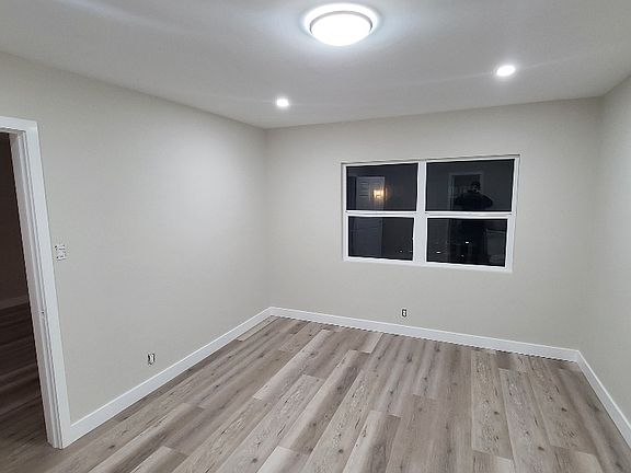 Modern single family home with beautiful remodeled kitchen with new white shaker cabinets, quartz counters and backsplash, refrigerator, range/oven, microwave, and dishwasher. Remodeled bathroom with new tiled shower, glass shower door, fixtures, and large lighted mirror. Separate dining area microwave. New hardwood flooring, lighting, dual pane windows, faux blinds, central HVAC, new roof and off street parking next to the house. Attached garage with laundry hook ups and storage. Small private yard for pets and BBQ. Quiet and secure location close to the Downey promenade and 12 miles from Los Angeles. Will be available by March 1st or sooner. Pets ok.